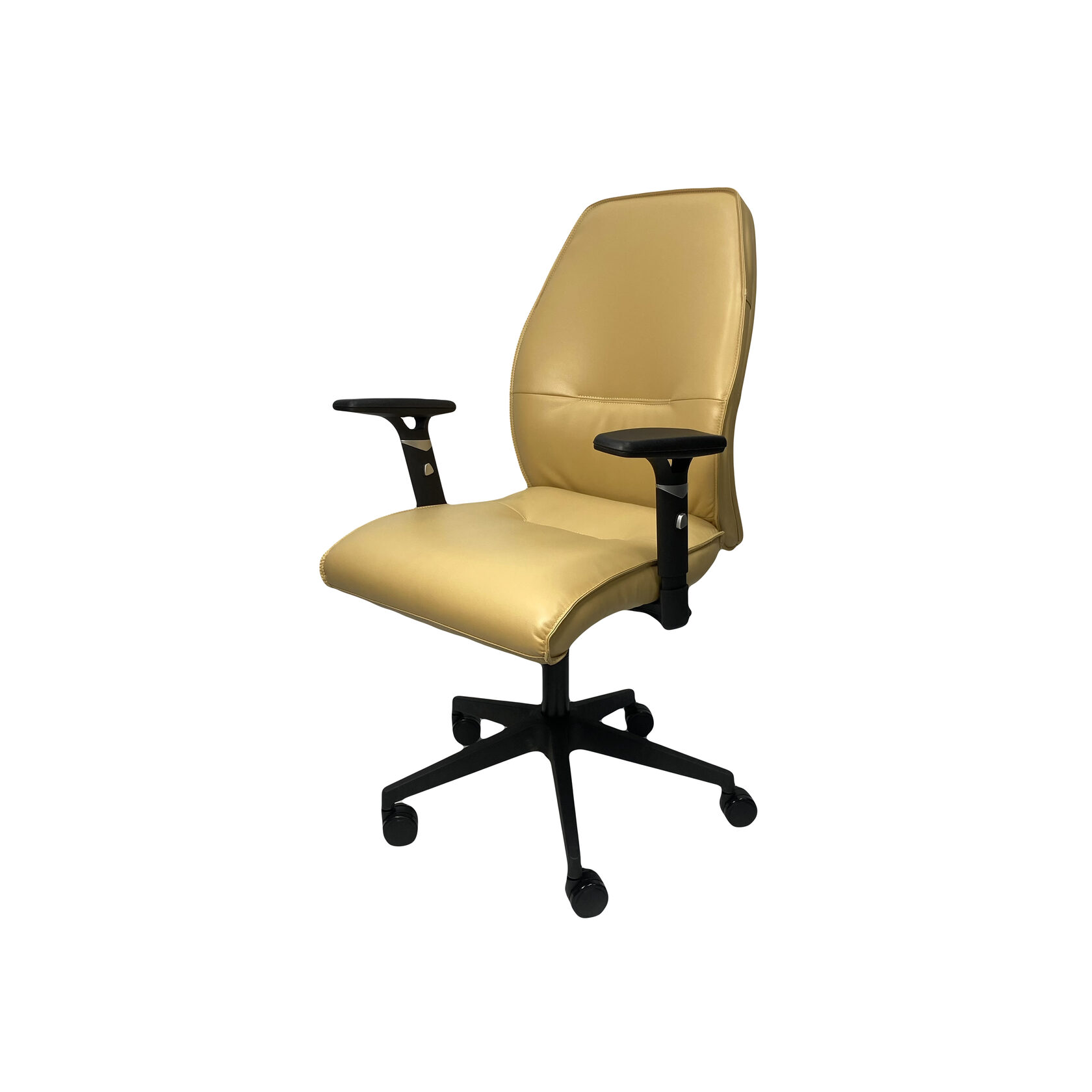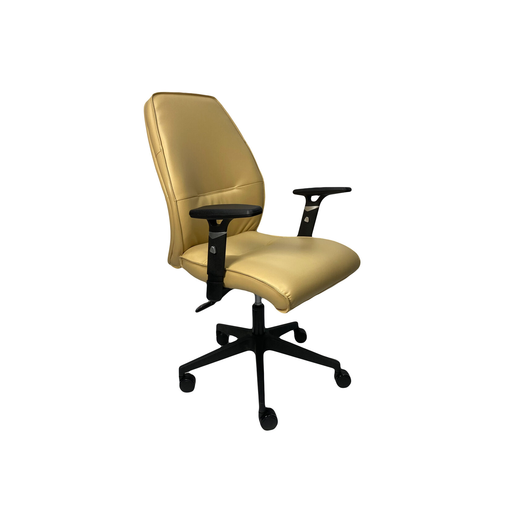 Компактное кресло имеет износостойкую обивку и удобные Т-образные подлокотники, регулируемые по высоте;
