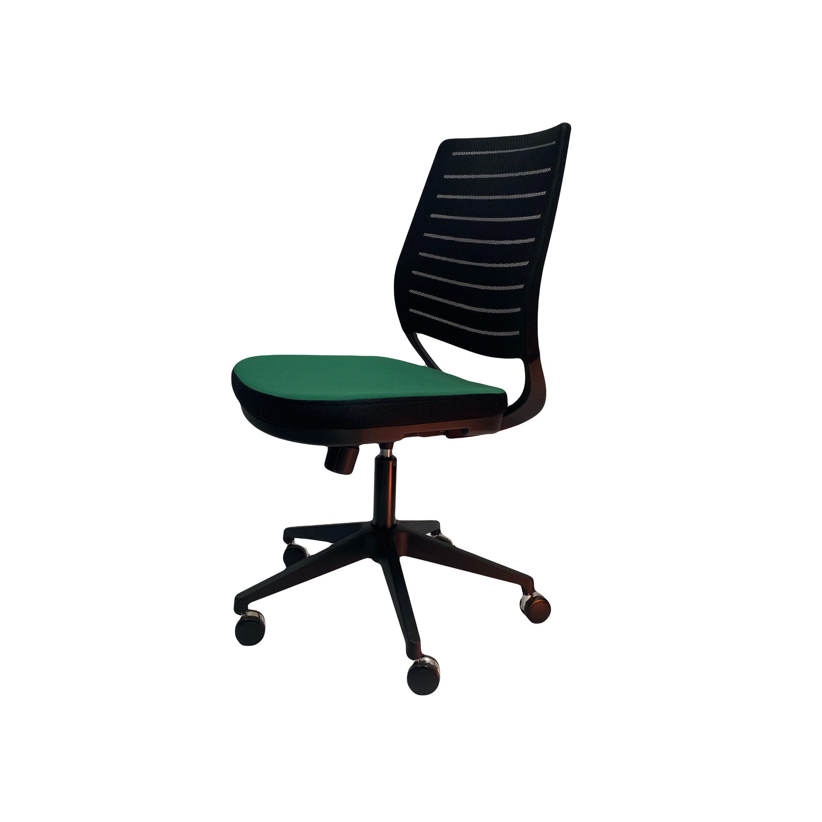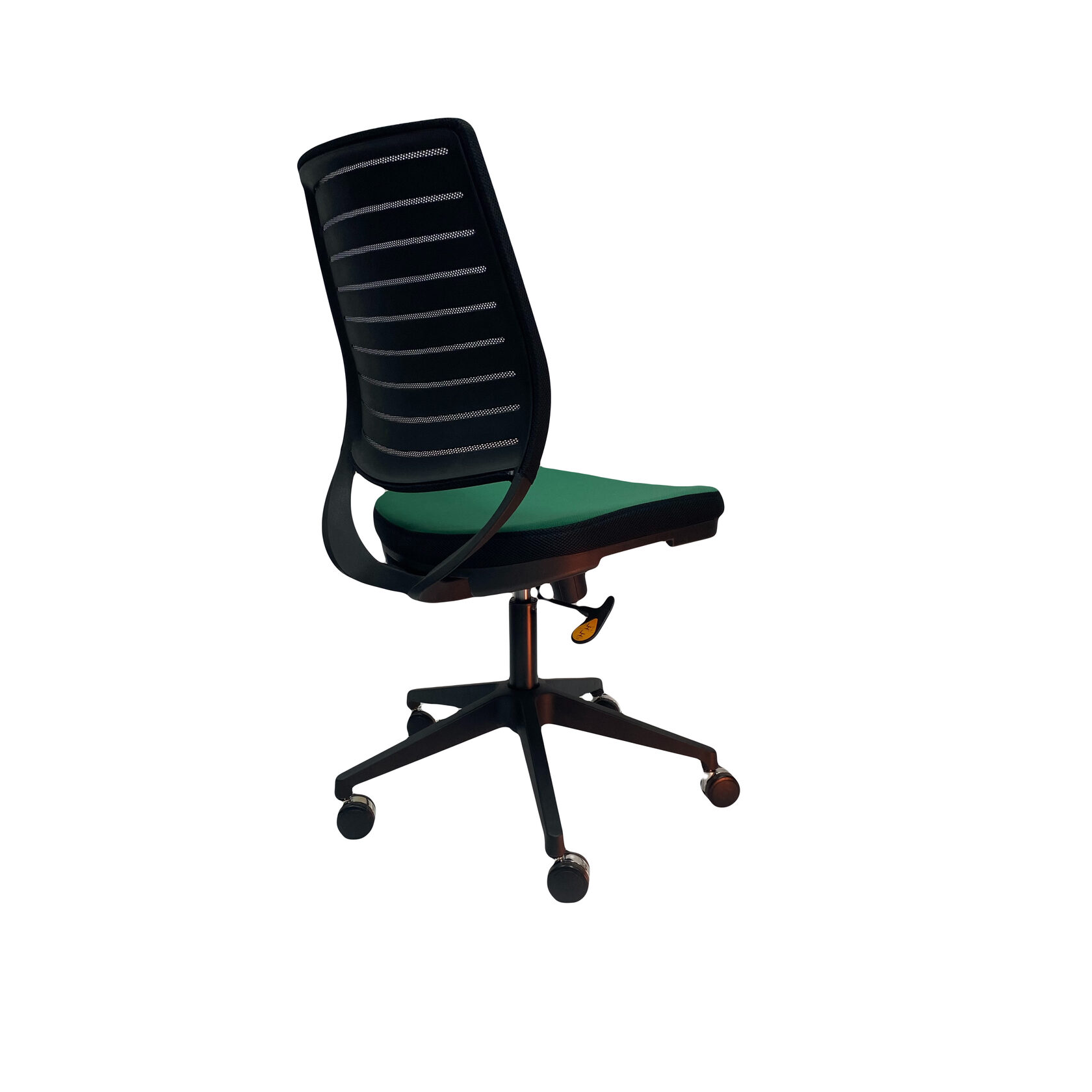 Синхромеханизм кресла с двумя рычагами. Один рычаг для регулировки высоты подъема кресла, второй рычаг позволяет свободно менять положение тела, обеспечивая постоянный контакт спины пользователя со спинкой кресла, а также фиксирует угол наклона спинки в любом положении;